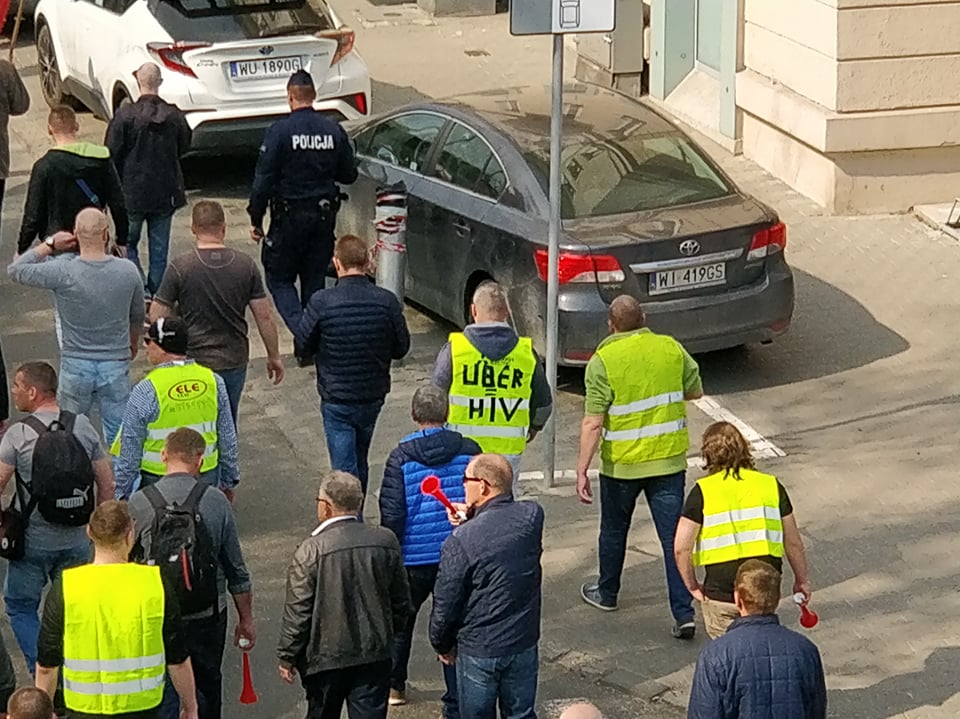 Taksówkarze zorganizowali pochód przed KPRM. Komunikacja na objazdach