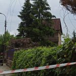 Na ul. Lewicpolskiej na Targówku złamane drzewo upadło na słup i zerwało linie energetyczne.