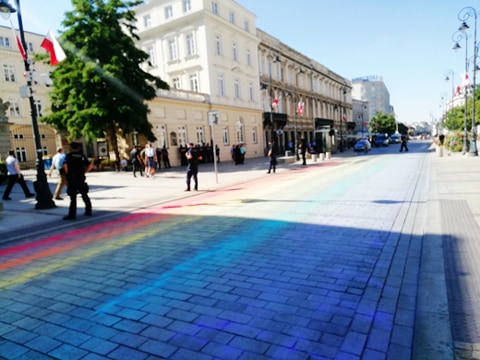 Ludzie związani ze środowiskiem LGBT w Polsce niedługo zaczną swoje zgromadzenie na Krakowskim Przedmieściu. Już teraz rozsypano tęczowy proszek na jezdnię na wysokości Akademii Sztuk Pięknych.