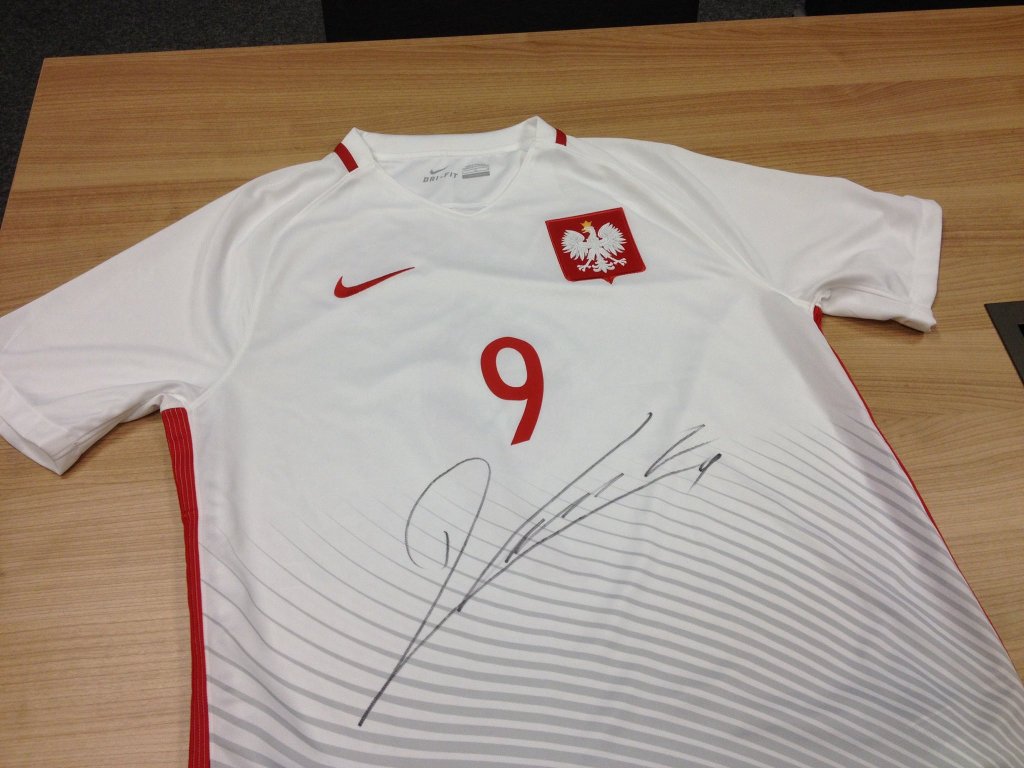 Wojtek sprzedaje koszulkę meczową Roberta Lewandowskiego z jego autografem. W koszulce tej grał w meczu z Danią i strzelił 3 bramki. Dochód z licytacji zostanie przeznaczony na sfinansowanie leczenia Wojciecha Jadwińskiego. Link do licytacji.