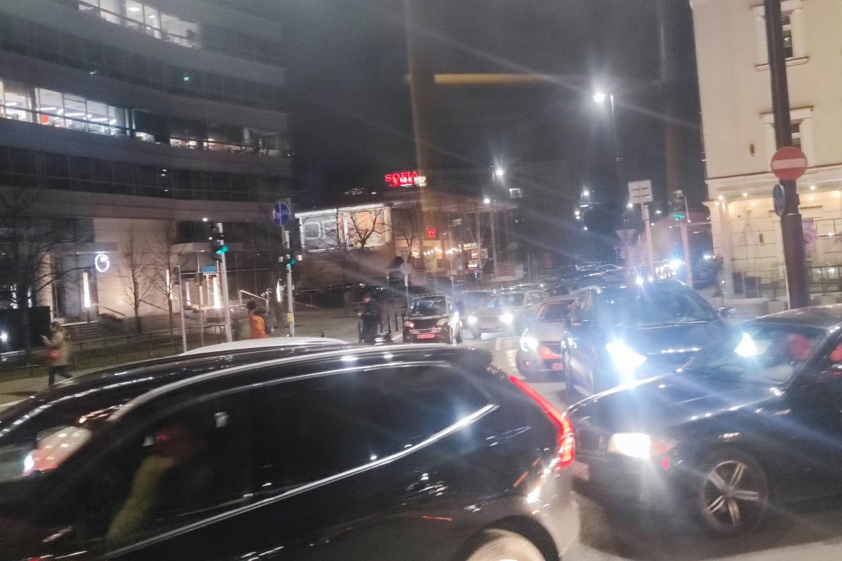 Przez zablokowane ulice i przemarsz, przy Rondzie Jazdy Polskiej zrobił się „Tetris”. Sytuację próbuje ratować policja kierując ruchem, ale przed Rondem kierowcy radzą sobie sami, wciskają się i przepuszczają.