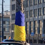 Wokoło palmy zebrała się spora grupa osób, która robi zdjęcia. Jak się okazało na palmie zawisła flaga.