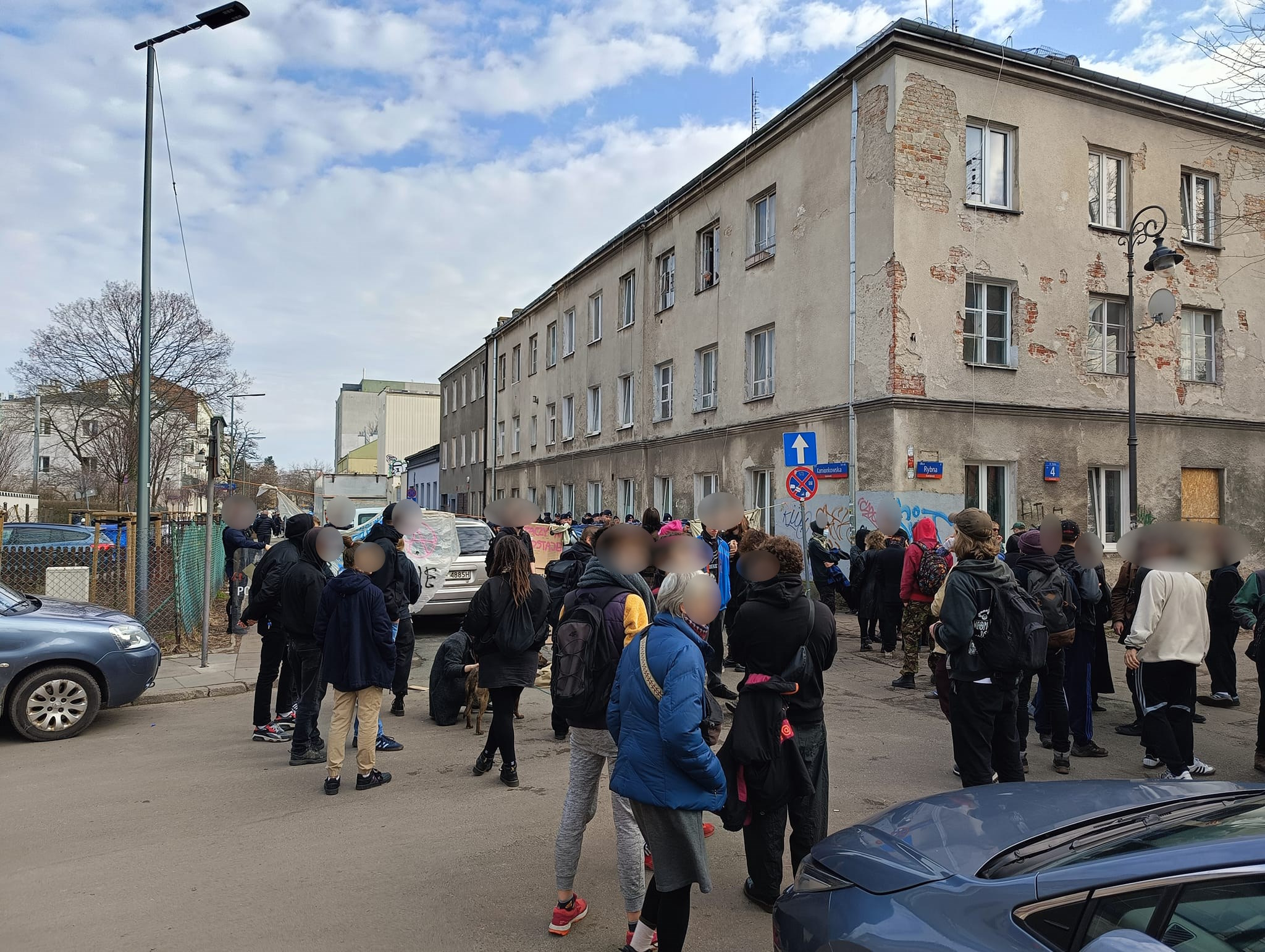Tłum na Kamionkowskiej. Na miejscu policja i komornik. Wokół zbierają się ludzie