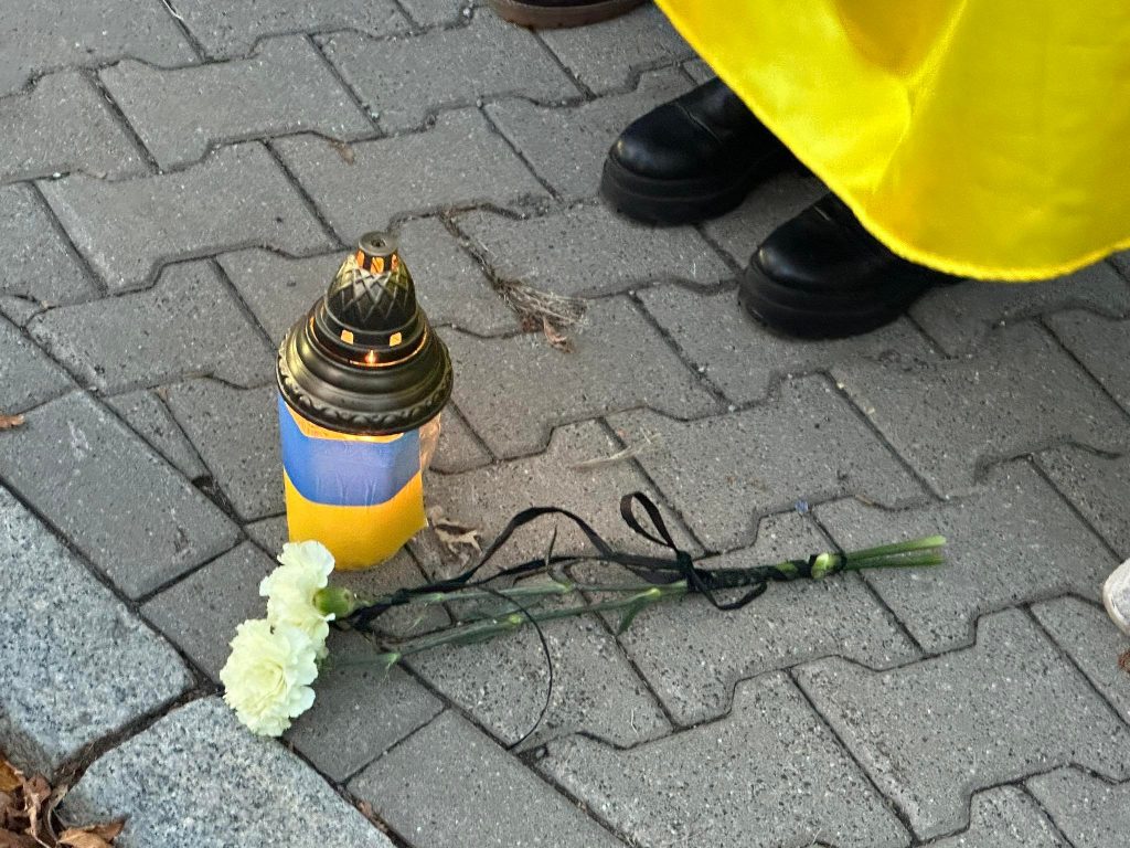 Zebrani przynieśli też znicze i plakat z napisem. że Rosja jest państwem terrorystycznym.
