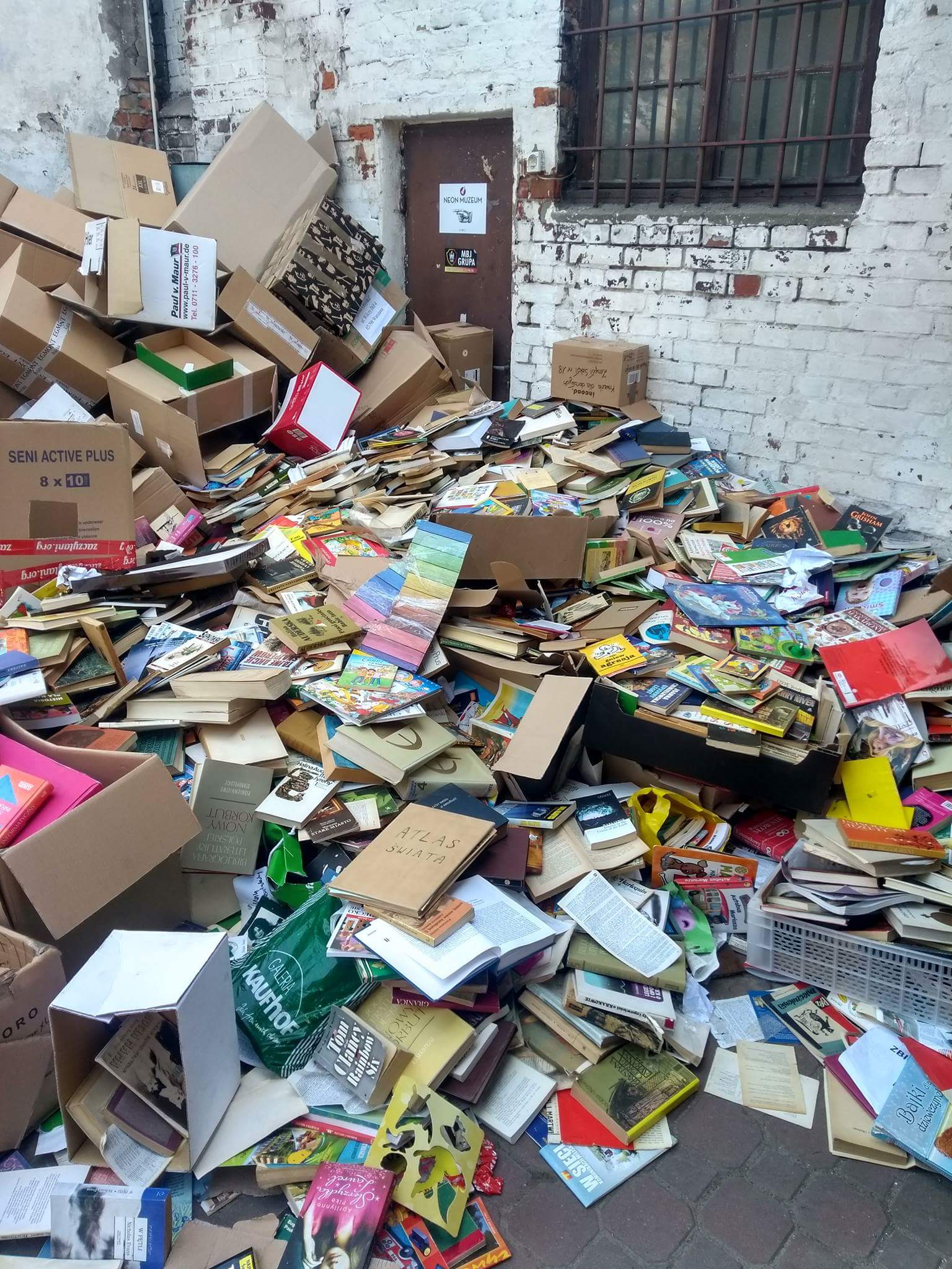 Po segregacji książek, dziesiątki tytułów trafiły na śmietnik. Po publikacji na Facebooku, dziesiątki ludzi przyszło, by uratować te które się da. Resztę zabrała śmieciarka?