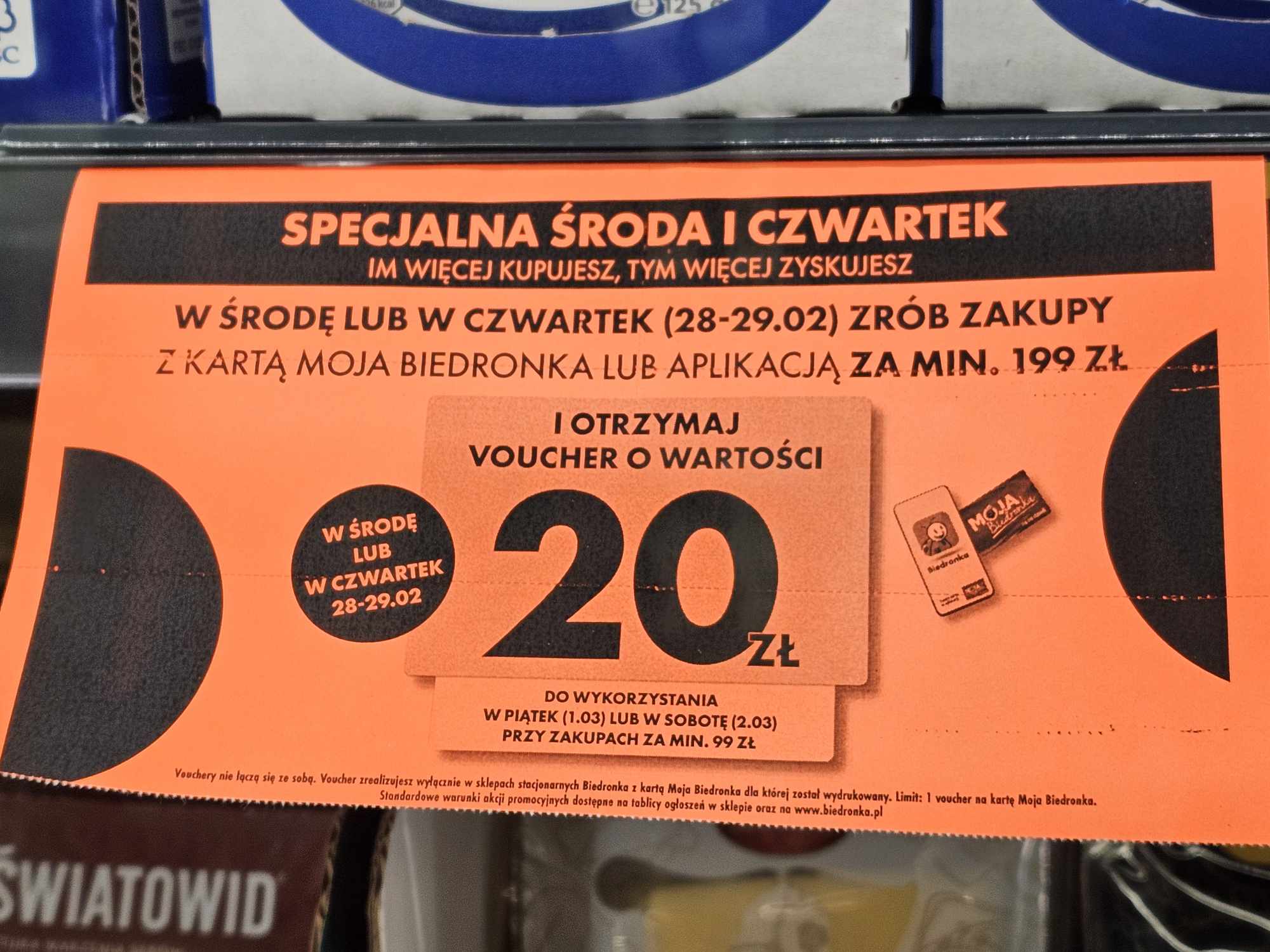 Środa i czwartek w Biedronce to dni, kiedy twoje zakupy mogą przynieść Ci jeszcze więcej korzyści. Z ofertą „Specjalna Środa i Czwartek”, klient, który zrobi zakupy za minimum 199 zł z kartą Moja Biedronka lub aplikacją, otrzyma voucher o wartości 20 zł do wykorzystania w kolejnych dniach. To doskonały sposób, aby planując większe zakupy, cieszyć się z dodatkowych oszczędności.