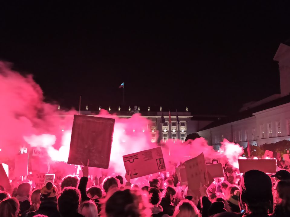 Z Kurii na Miodowej tłum przeniósł się pod Pałac Prezydencki. Ludzie krzyczą: „Czemu milczysz pierwsza damo?” – kierując pytanie do Agaty Dudy.