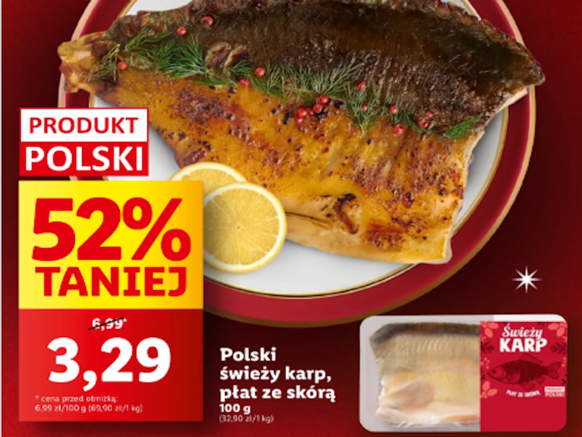 Od czwartku, 14 grudnia, miłośnicy świeżych ryb będą mieli niepowtarzalną okazję, aby skorzystać z wyjątkowej promocji w Lidlu. W ramach tej limitowanej oferty, świeży polski karp płat ze skórą będzie dostępny w cenie zaledwie 3,29 zł za 100 gram, co stanowi aż 52% zniżkę od regularnej ceny 6,99 zł.