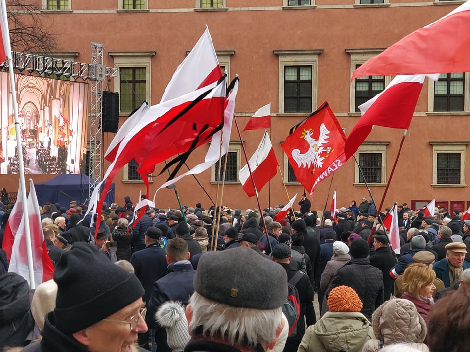 Tłumy warszawiaków zebrały się na pl. Zamkowym, by pożegnać byłego premiera. Wystawiono tam specjalny telebim, który transmituje ceremonię.