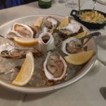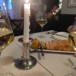 Na przystawkę podano nam bułeczkę z obłędnym smarowidłem, ślimaki i ostrygi, klasycznie serwowane z cytrynką i sosem z octu winnego i szalotki oraz porcję absolutnie przepysznego zapiekanego homara. Co ciekawe obsługa lokalu tłumaczyła nam wszystko dokładnie łącznie z tym, jak powinno jeść się daną rzecz, żeby smakowała jak najlepiej. Część rzeczy już wiedzieliśmy, częścią nas zaskoczono, a pomimo ogromu pracy nie szczędzono cennego czasu.