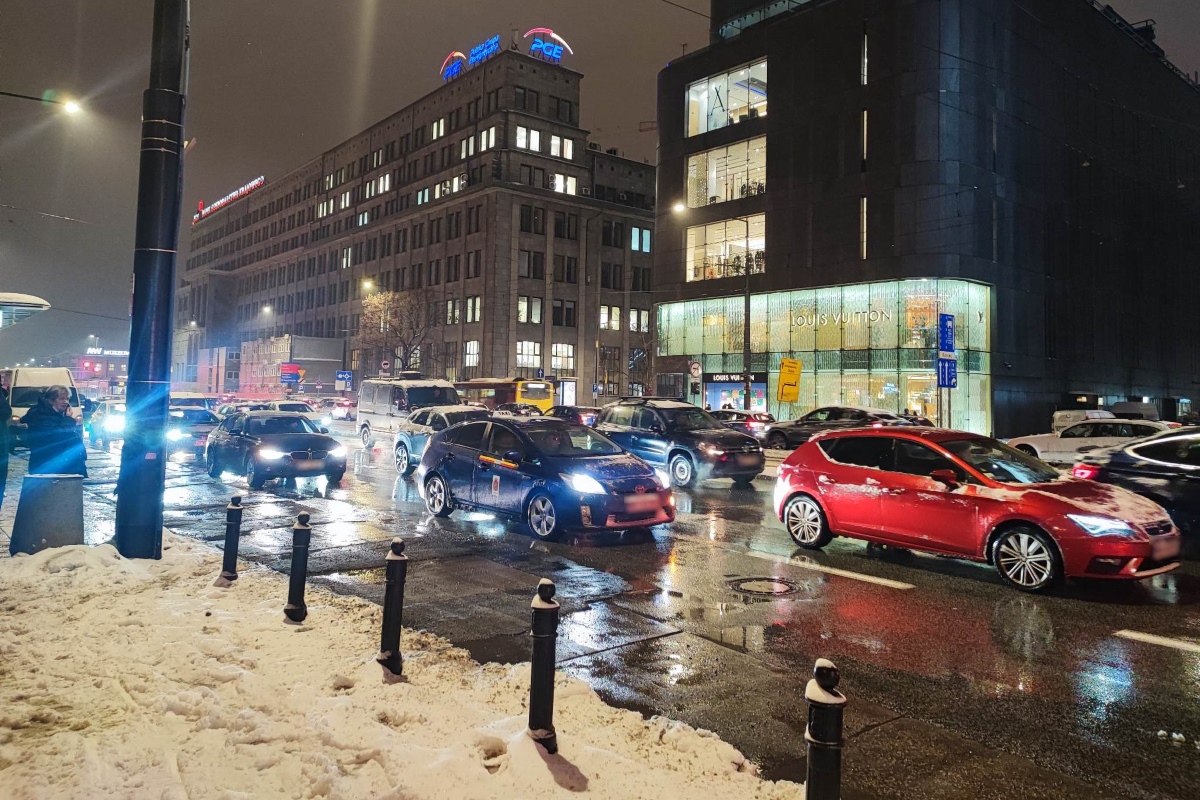 W innych częściach Warszawy ruch odbywa się bardzo powoli lub są korki, ale na wymienionych wcześniej trasach są ogromne utrudnienia.