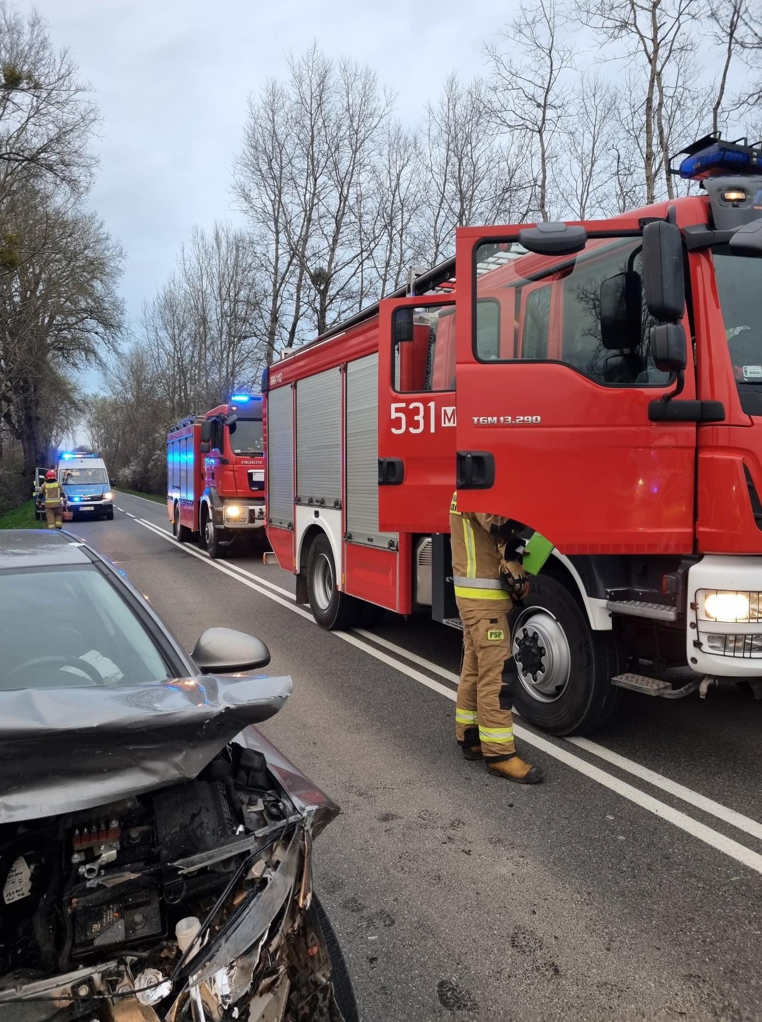 Groźnie wyglądające zdarzenie drogowe. W dniu 21.04.2022r. około godziny 19:00 do Stanowiska Kierowania Komendanta Powiatowego PSP w Nowym Dworze Mazowieckim wpłynęło zgłoszenie o wypadku dwóch samochodów osobowych w miejscowości Sady. Po przybyciu na miejsce zdarzenia działania zastępów JOP polegały na zabezpieczeniu miejsca zdarzenia, odłączeniu akumulatora oraz udzielenia KPP dwóm osobom poszkodowanym. W działaniach brały udział: 2x JRG, 1xOSP Kazuń Polski, 1x patrol policji, 2x pogotowie ratunkowe.