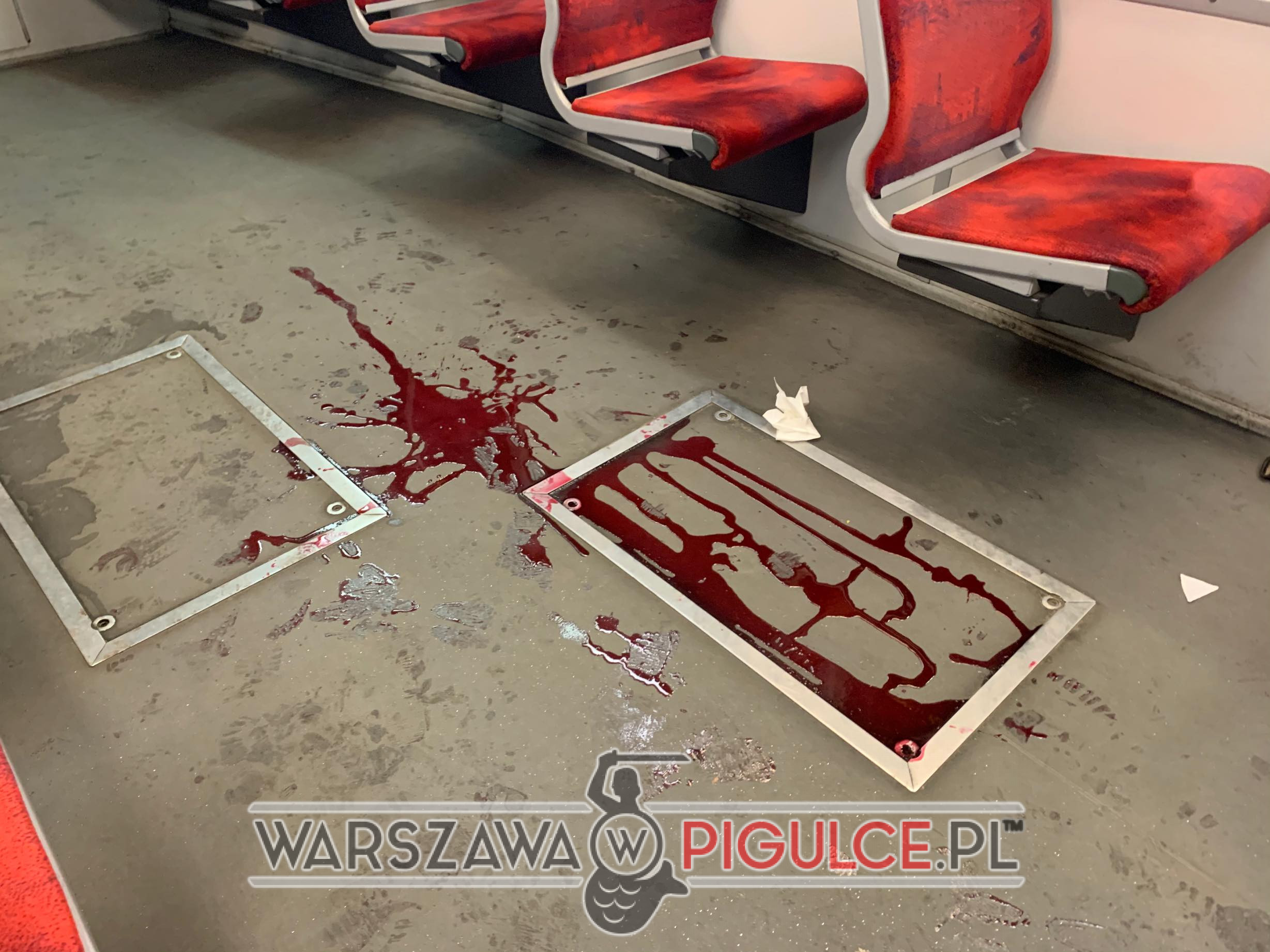 Wczoraj w nocy wracaliśmy tramwajem z Dworca Centralnego na Grochów. Gdy weszliśmy do tramwaju nr 24 naszym oczom ukazał się widok jak z horroru.
