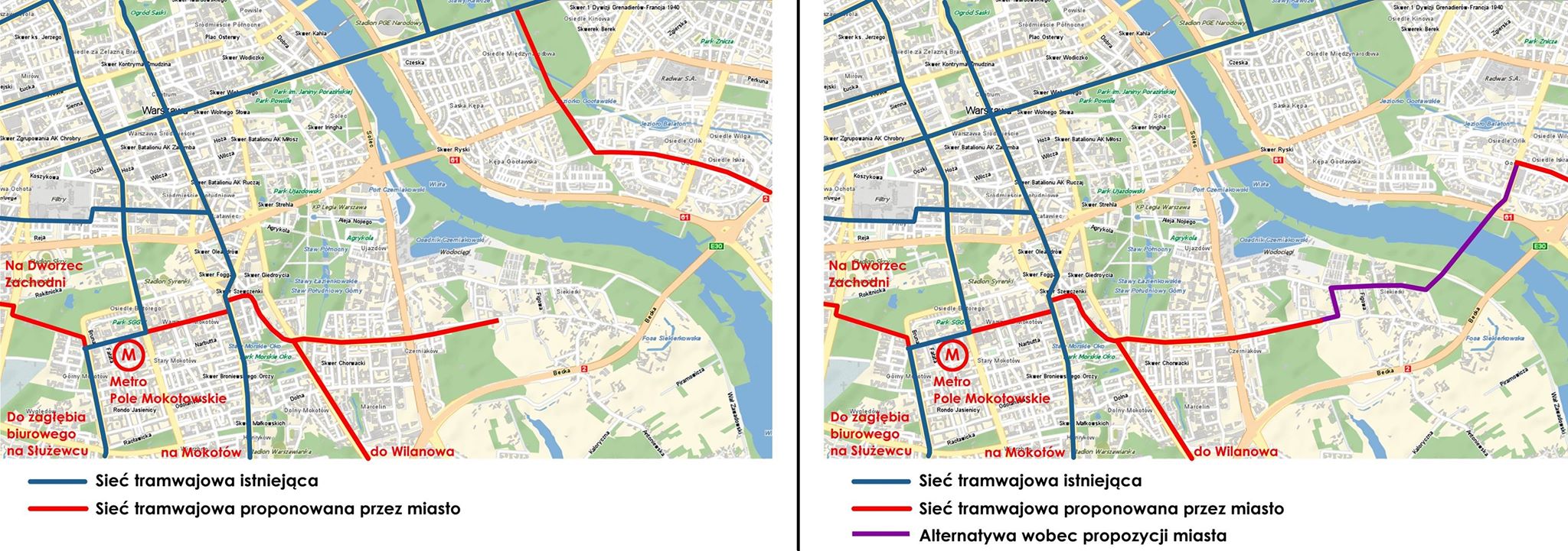 4. Wcześniej Tramwaje Warszawskie proponowały przeprawę tramwajową na wys. ul. Fieldorfa oraz tramwaj wzdłuż ul. Kinowej. Zmiana decyzji powinna zostać wyjaśniona.