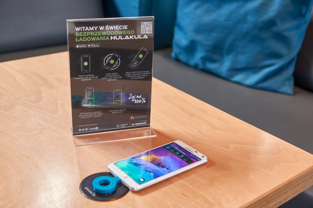 Powermat – to system ładowania bezprzewodowego dostępny w przestrzeni publicznej: restauracjach, punktach usługowych czy kawiarniach, który dzięki specjalnej aplikacji umożliwia komunikację właściciela lokalu z klientem, zapewniając jednocześnie użytkownikom dostęp do ofert promocyjnych.
