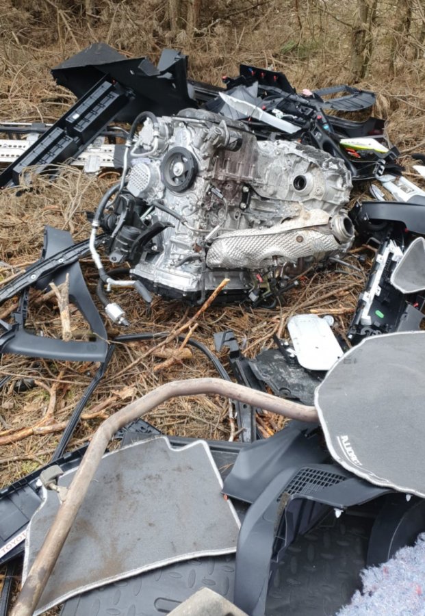 Podczas przeszukania posesji oraz zaparkowanych pojazdów, na samochodzie dostawczym, policjanci ujawnili karoserię pojazdu m-ki toyota corolla raz z kołami, niestety nr umożliwiające identyfikację zostały usunięte. W związku z tym, kryminalni wrócili do kompleksu leśnego, gdzie wcześniej obserwowali auta. Na miejscu ujawnili silnik i komputer samochodowy oraz elementy plastikowe pojazdu pasujące do corolli. Przedmioty zostały zabezpieczone i przekazane biegłemu, który potwierdził, że wszystkie elementy pochodzą od skradzionej dwa dni wcześniej toyoty z terenu Białołęki.