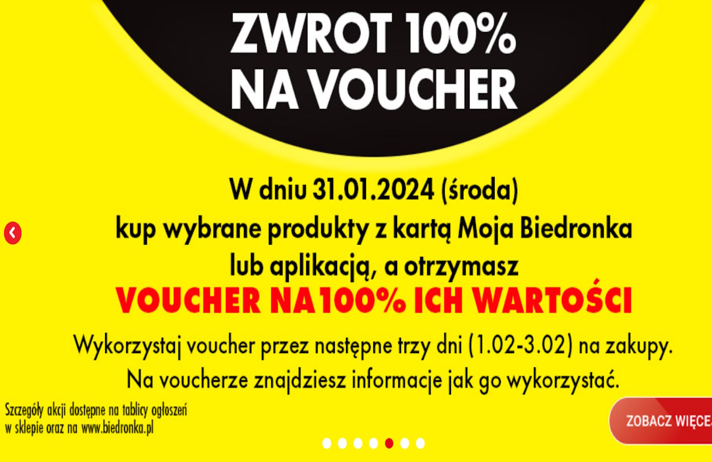 W najnowszej, ekscytującej ofercie sieci sklepów Biedronka, klienci mogą cieszyć się niebywałą okazją – zwrotem 100% wartości zakupów w formie vouchera. Ale uwaga, promocja obowiązuje tylko dzisiaj, 31 stycznia 2024 roku!