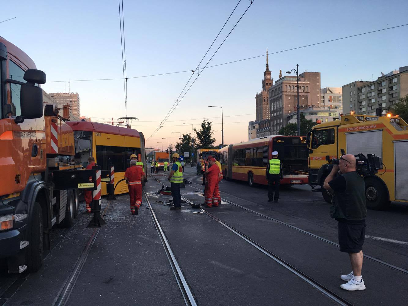 Ze wstępnych ustaleń wynika, że zawinił kierowca autobusu, który jechał ul. Marszałkowską od Placu Bankowego i skręcał w lewo w ulicę Królewską. Tramwaj jechał natomiast od Ronda Dmowskiego prosto w kierunku Placu Bankowego. Kierowca autobusu nie ustąpił pierwszeństwa motorniczej i doszło do zderzenia. Z relacji świadków wynika, że Pani motornicza widząc co się dzieje zwolniła, przyjmując uderzenie na siebie. Na szczęście nic jej się nie stało.