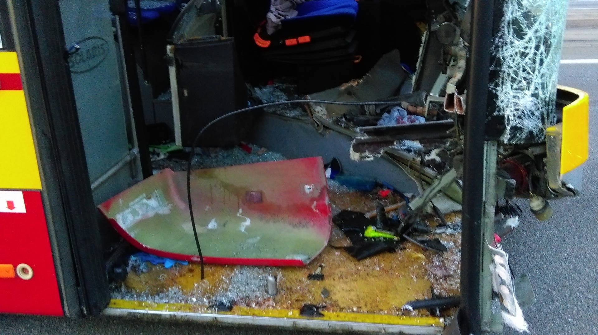 Skala zniszczeń pokazuje, jak blisko było od tragedii. Cały przód autobusu jest zniszczony, podobnie, jak przód tramwaju. Wszędzie leżały odłamki szkła i kawałki części.