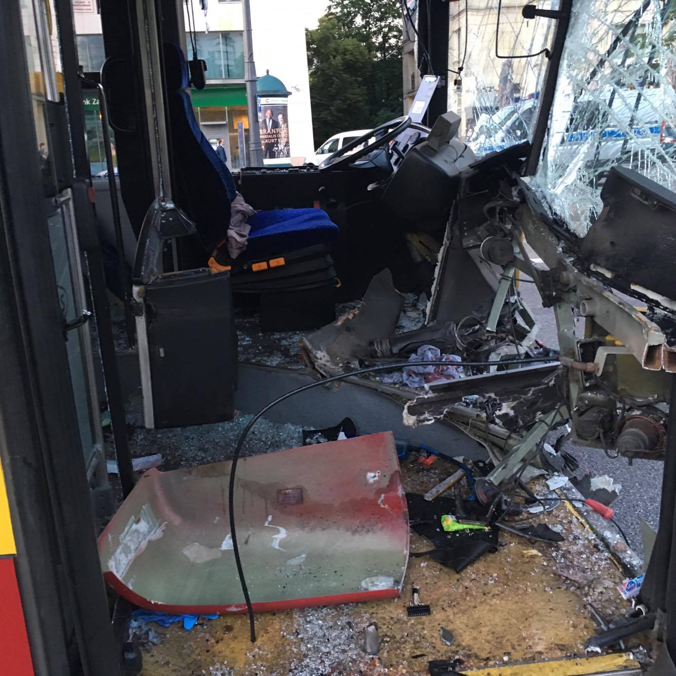 Wczoraj około 18.30 na skrzyżowaniu ulic Marszałkowskiej i Królewskiej, doszło do zderzenia autobusu linii 111 z tramwajem nr 18. Ranne zostały 3 osoby w tym kierowca autobusu. Zdjęcia z wnętrza ujawniają skalę zniszczeń i siłę uderzenia.