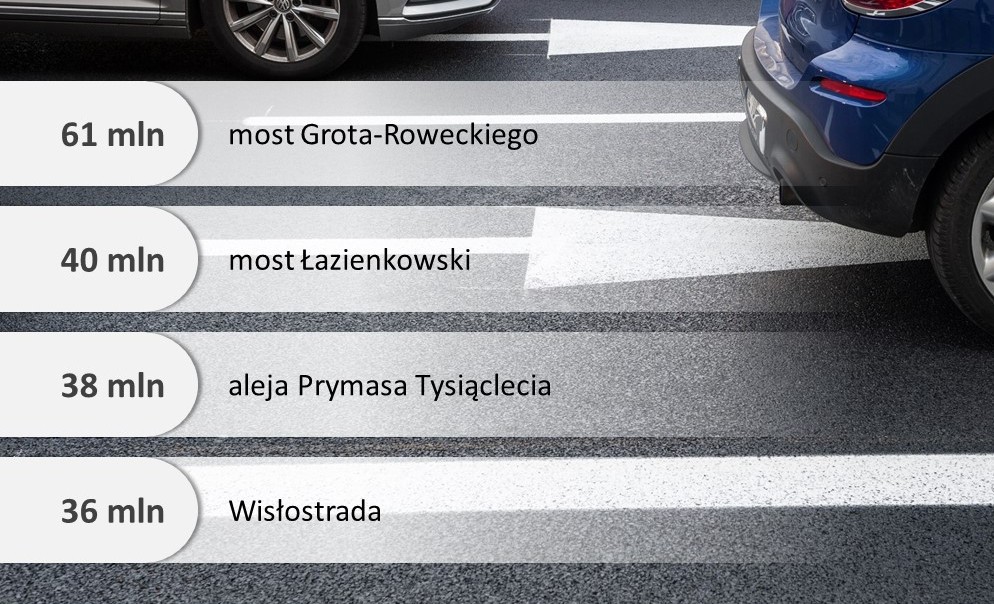 Punkty stałego pomiaru ruchu działają w stolicy od lat 90. Obecnie w systemie – cały czas rozwijanym – znajduje się ich ponad 100. Pomiar możliwy jest dzięki pętlom indukcyjnym znajdującym się pod warstwą ścieralną drogi. W ten sposób dane trafiają do specjalnego systemu, gdzie są zbierane i analizowane. Informacje z 15 wybranych punktów pomiarowych, znajdujących się w różnych miejscach miasta, nie pozostawiają wątpliwości – każdego roku ulicami Warszawy przejeżdża kilkaset milionów pojazdów.