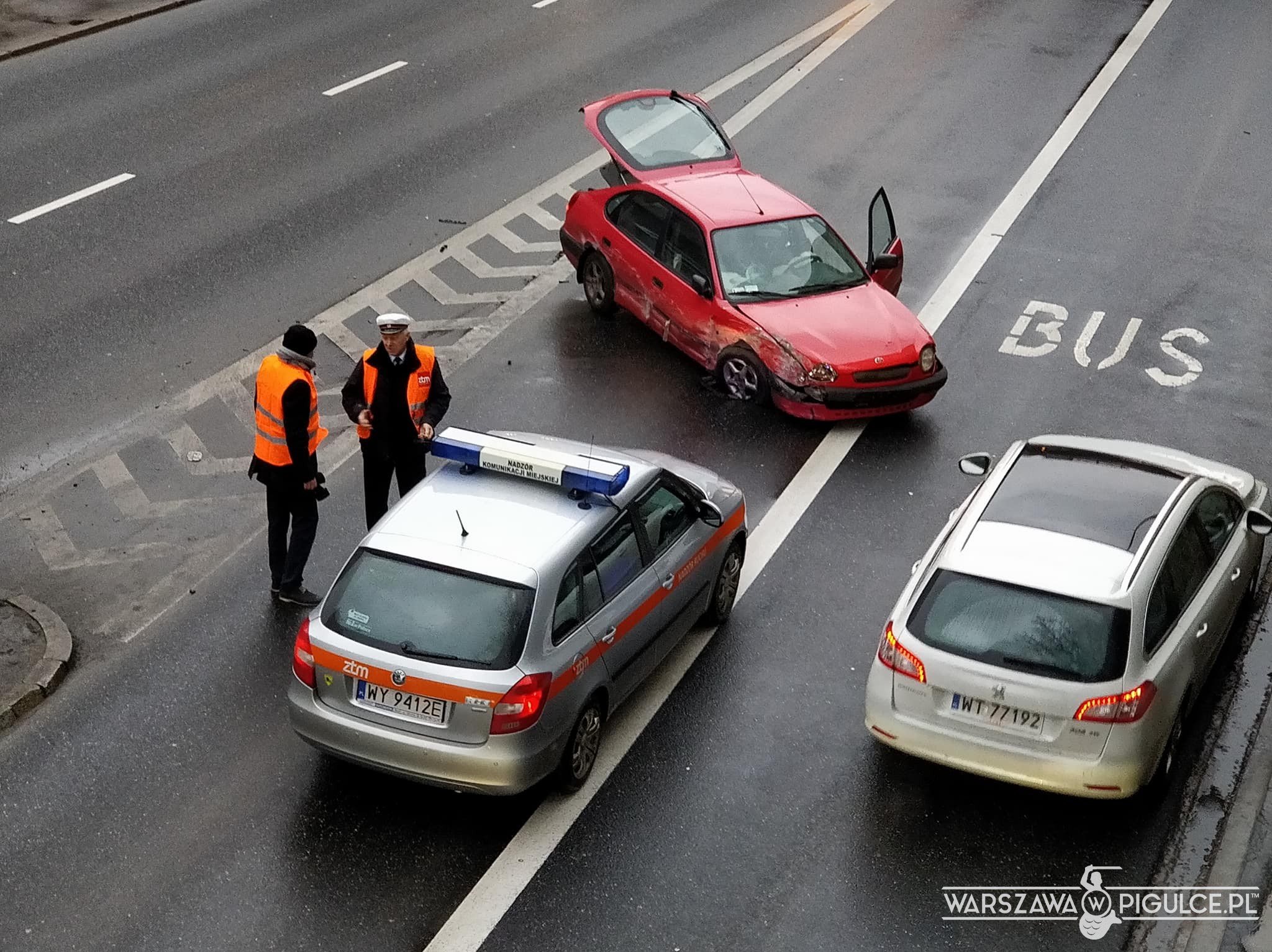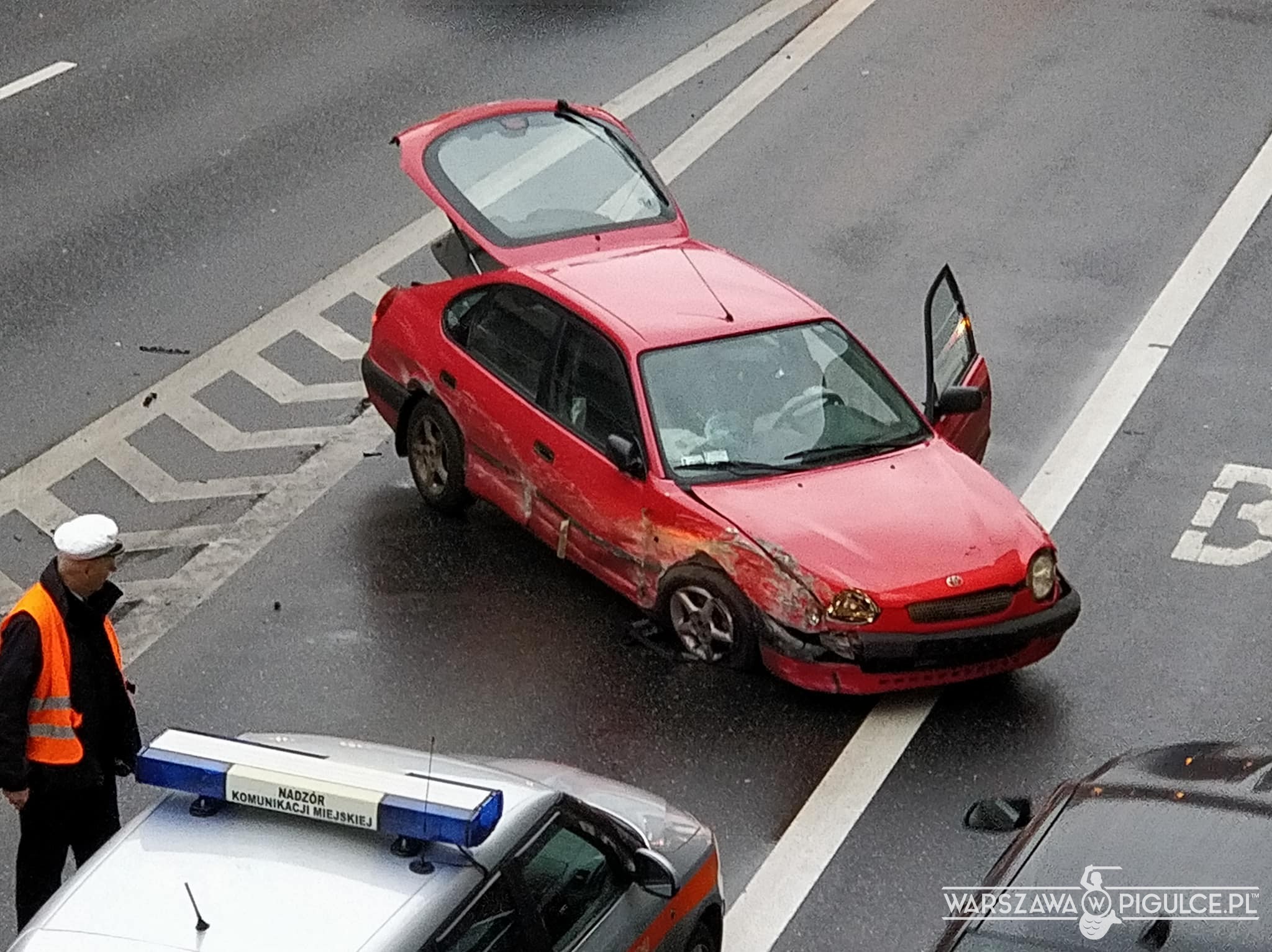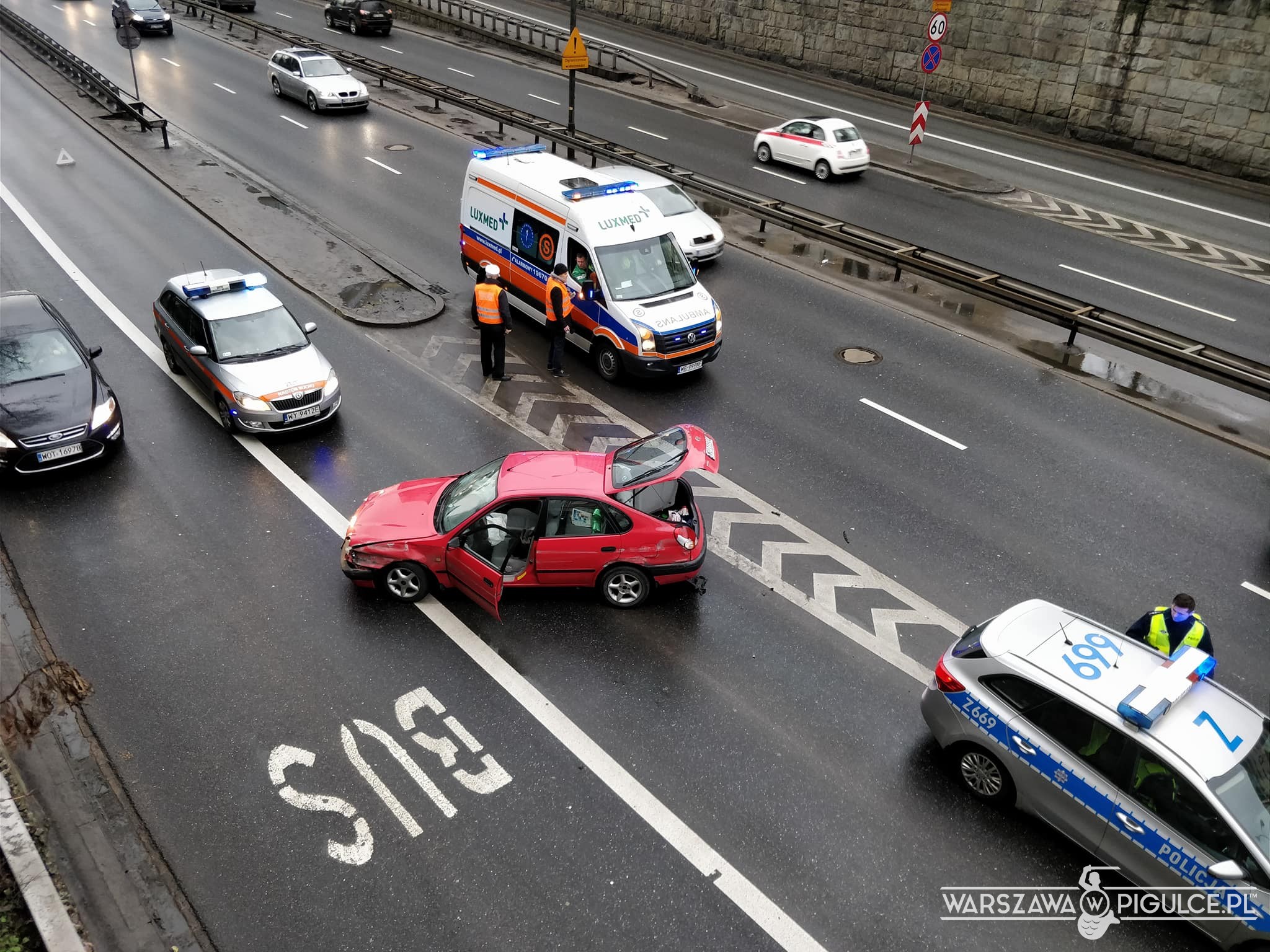 Przy zjeździe z Ronda Jazdy Polskiej w kierunku Pragi, na Trasie Łazienkowskiej doszło do wypadku. Kierowca, najprawdopodobniej wraz z pasażerem uderzył w barierki. Pogotowie przybyłe na miejsce nie znalazło nikogo w pojeździe.