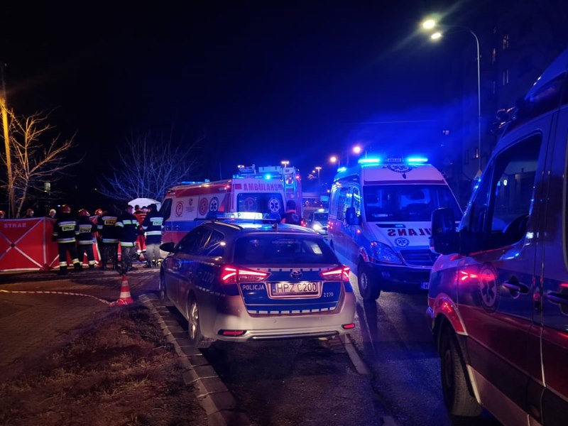 Na miejscu są trzy karetki pogotowia ratunkowego, dwa zastępy straży pożarnej i trzy radiowozy policji.