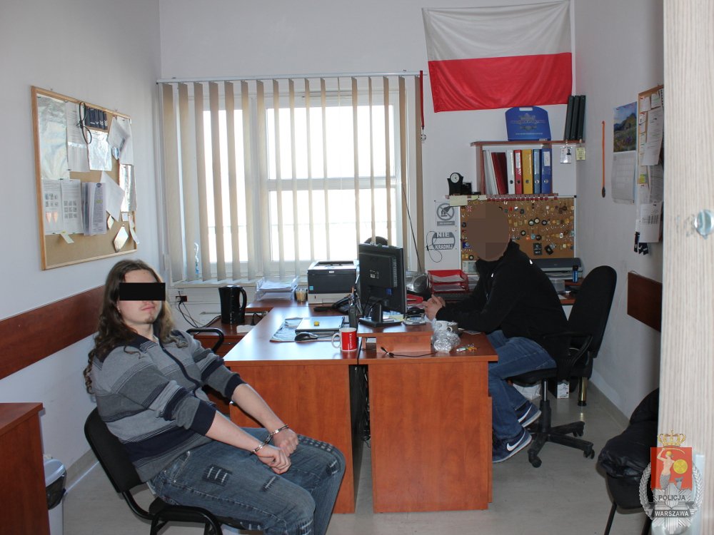 Policjanci z prewencji natychmiast rozpoczęli poszukiwania podejrzanych. W trakcie penetracji, przy ul. Łomżyńskiej, mundurowi zauważyli dwóch mężczyzn odpowiadających rysopisem sprawców. Obaj zostali wylegitymowani. Podczas przeszukania w torbie należącej do 19-letniego Adriana G. policjanci znaleźli skradzione części glinianych figurek, jak również drążek zmiany biegów. 19 i 20-latek zostali zatrzymani i trafili do aresztu przy ul. Jagiellońskiej.