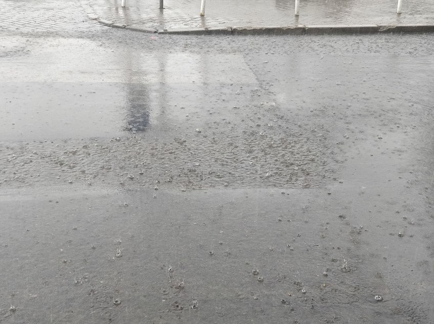 Nad Białołęką przechodzi właśnie potężna ulewa. Ulice zmieniły się w potoki. Było słychać także uderzenia pioruna.