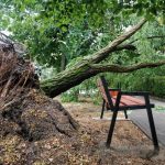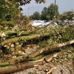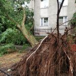 Ulica Literacka: Drzewo wyrwane z korzeniami spadło na blok, obok kolejne na samochody