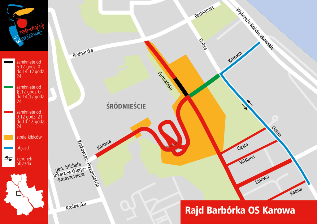 W związku z organizacją rajdu, od piątku, 9 grudnia od godz. 21.00 do soboty, 10 grudnia do godz. 24.00, wyłączone z ruchu zostaną: