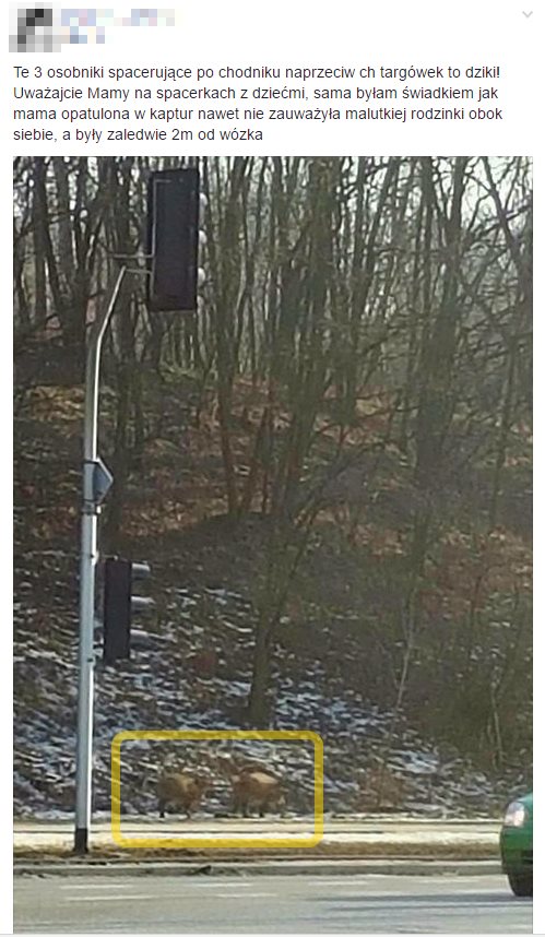 Na grupie mieszkańców Białołęki znowu rozgorzała dyskusja o dzikach. Tym razem trzy osobniki widziane były niedaleko CH Targówek. Matka, która przechodziła z wózkiem nie zauważyła zwierząt i minęła je dwa metry dalej.