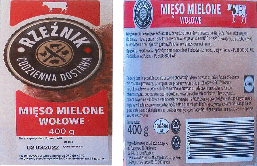 W wyniku działań urzędowych Państwowej Inspekcji Sanitarnej wykryto Salmonella spp. w 1 z 5 próbek produktu „Mięso mielone wołowe, 400g”.
