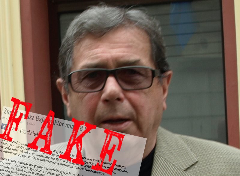 Po nieprawdziwej informacji o śmierci Zbigniewa Wodeckiego (podanej ponad tydzień przed śmiercią artysty) oraz fałszywym newsie o „filmie przedstawiającym śmierć Magdaleny Żuk i jej ostatnie słowa”, pojawił się kolejny portal z wymyślonymi wiadomościami. Tym razem podano informację o rzekomej śmierci Janusza Gajosa.