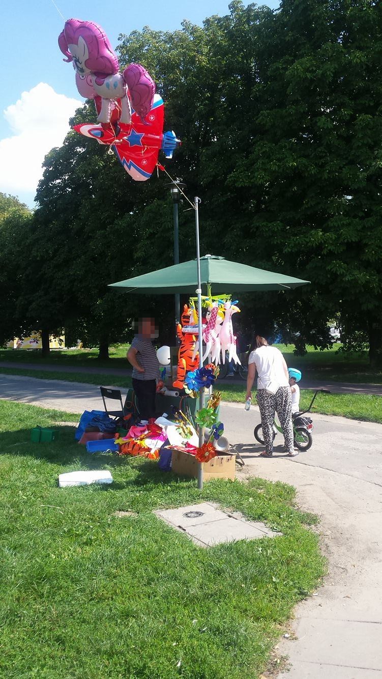 „Pan ze stoiska z watą cukrową myje sprzęt w bajorku na Polu Mokotowskim. Po czym sprzedaje z niego watę” – informuje nas nasza czytelniczka. Rzeczywiście, na filmie widać, jak mężczyzna myje sprzęt, a następnie ta sama osoba uwieczniona jest na zdjęciach przy sprzedaży słodkości.