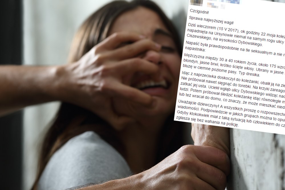 Uwaga na Ursynowie! Napadł na nią i obalił na ziemię. Ktoś go spłoszył, ale później znów ją śledził