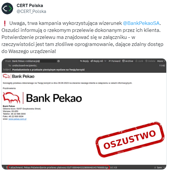 Ostrzeżenie dotyczące Banku Pekao