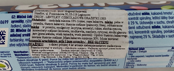 • Nazwa produktu: Orion – Lentilky czekoladowe drażetki 130 g