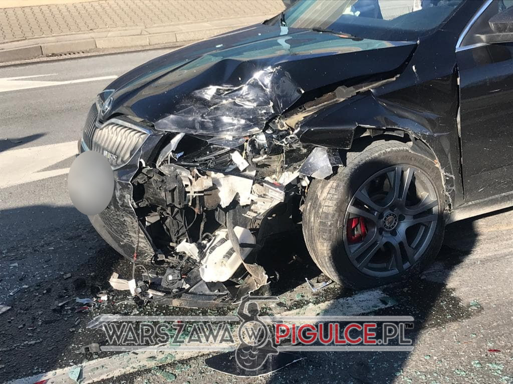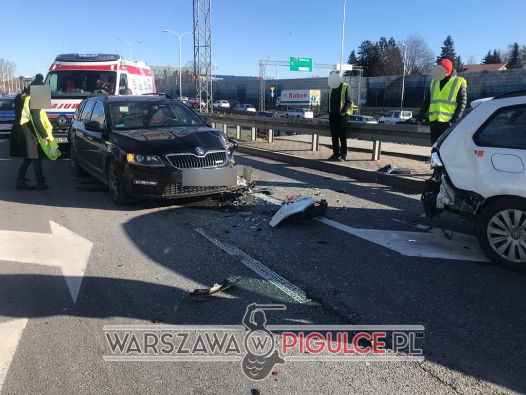 Na zjeździe z Alej Jerozolimskich na rondo Reagana zderzyły się trzy auta osobowe i ciężarówka. Są osoby poszkodowane.