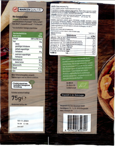 Produkt: enerBio Chipsy warzywne 75 g, z trzech rodzajów warzyw, produkt odpowiedni dla vegan