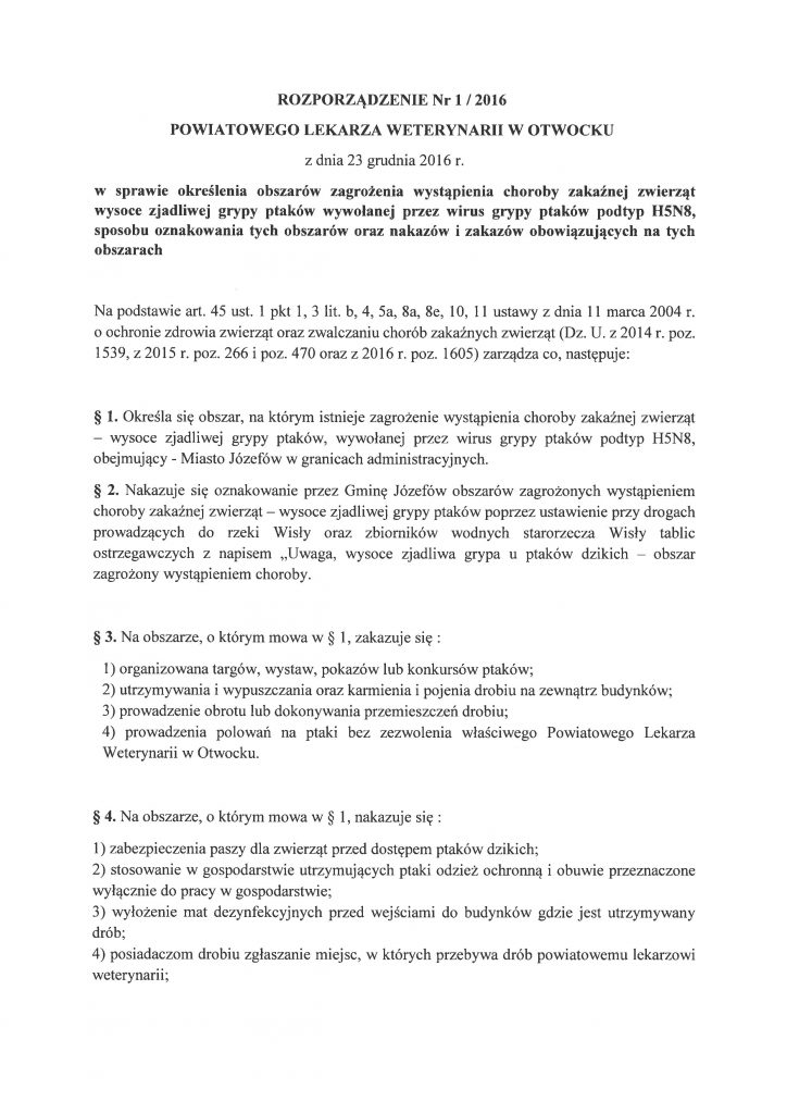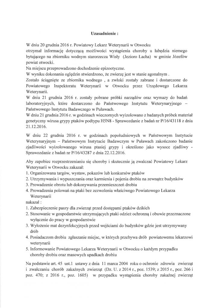 Potwierdziła się informacja o wystąpieniu przypadku ptasiej grypy na terenie Józefowa. Nad Jeziorem Łacha znaleziono martwego łabędzia, który był zarażony wirusem tej choroby.
