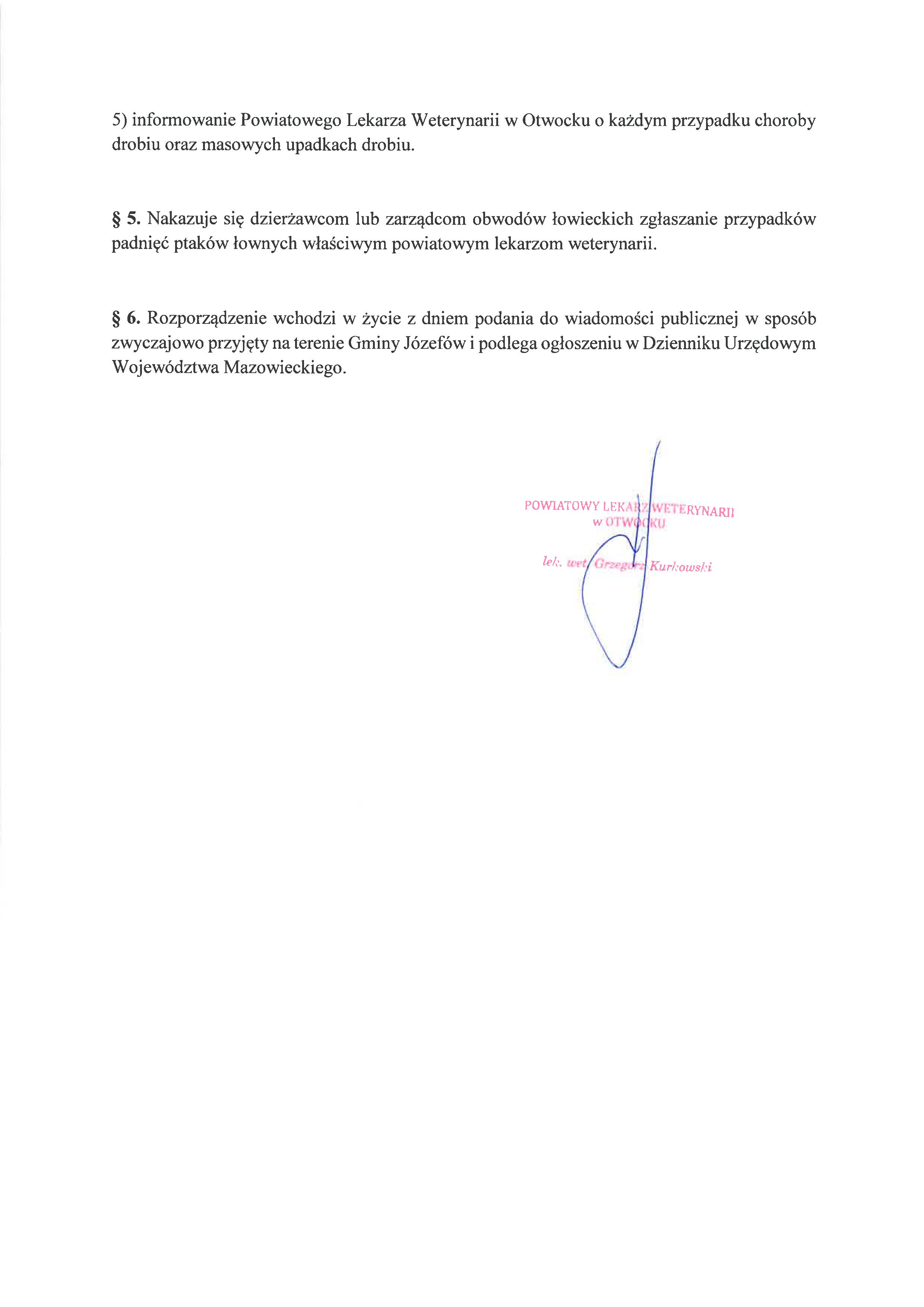 Wszyscy, którzy hodują drób lub inne ptaki (np. gołębie) są zobowiązani do niezwłocznego zgłoszenia miejsc ich przebywania Powiatowemu Lekarzowi Weterynarii w Otwocku, ul. Andriollego 80, tel. 22 779 25 26. Nie dotyczy to ptaków na stałe trzymanych w pomieszczeniach mieszkalnych.
