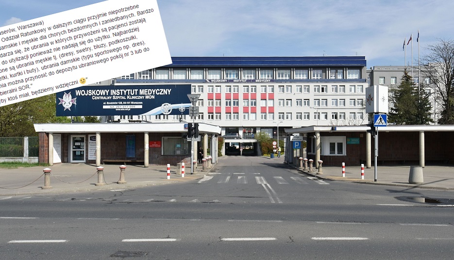 Szpitalny Oddział Ratunkowy Wojskowego Instytutu Medycznego na Szaserów na Południe potrzebuje ubrania damskich i męskich dla chorych, bezdomnych i zaniedbanych pacjentów.