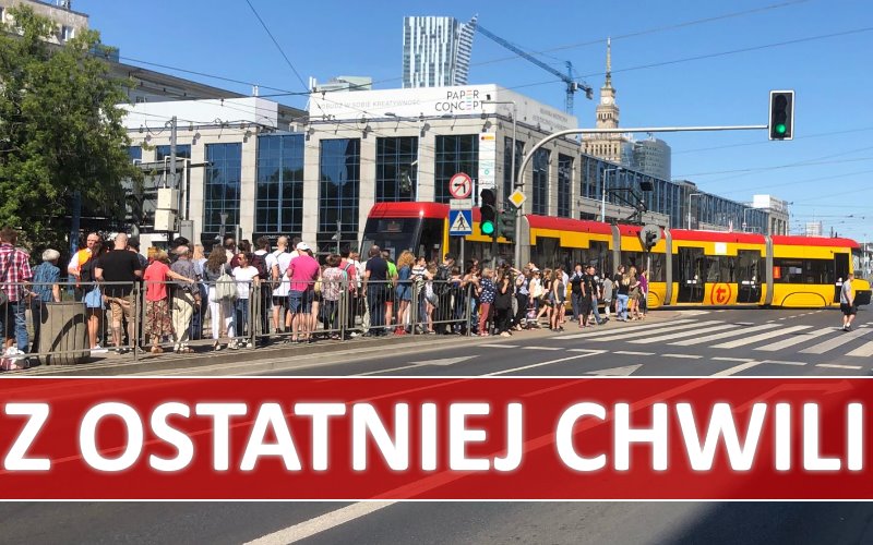Tramwaje na placu Starynkiewicza zatrzymały się, a motorniczy proszą o opuszczenie pojazdów. Ruch jest całkowicie wstrzymany z powodu przejścia Marszu Wolności.