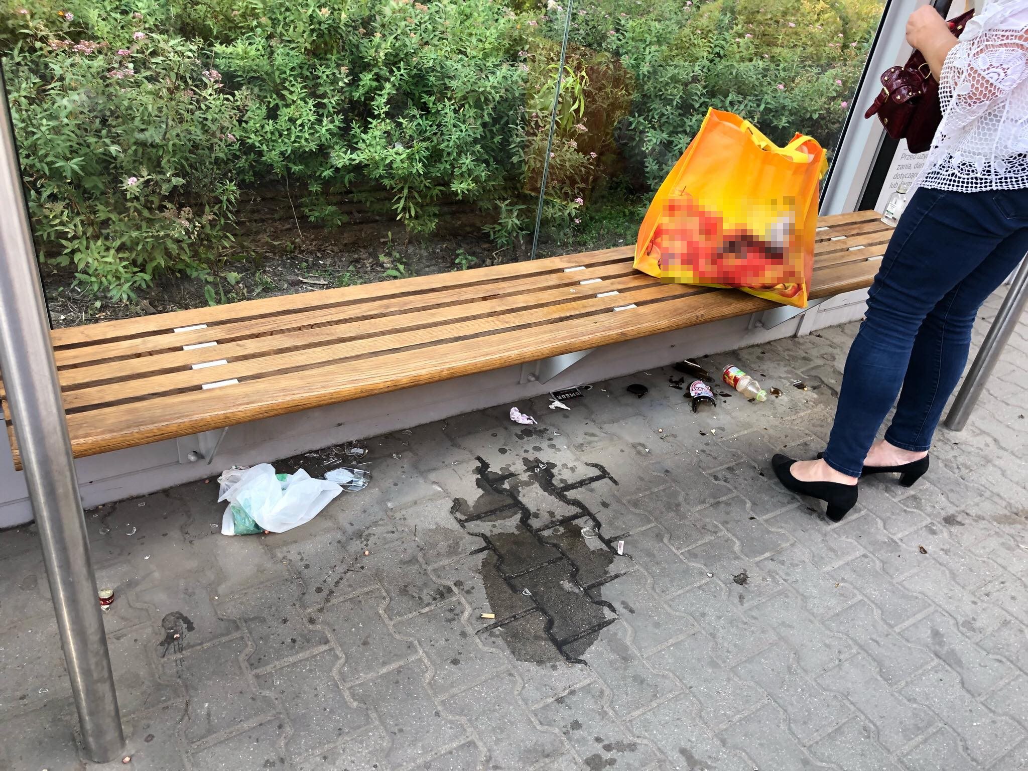 W drodze do centrum nasz reporter zauważył porozbijane szkoły na przystanku. Na domiar złego drobiny szkła są na ławce. Nikt tam obecnie nie siada, ale gdy się ściemni, można usiąść i się pokaleczyć.