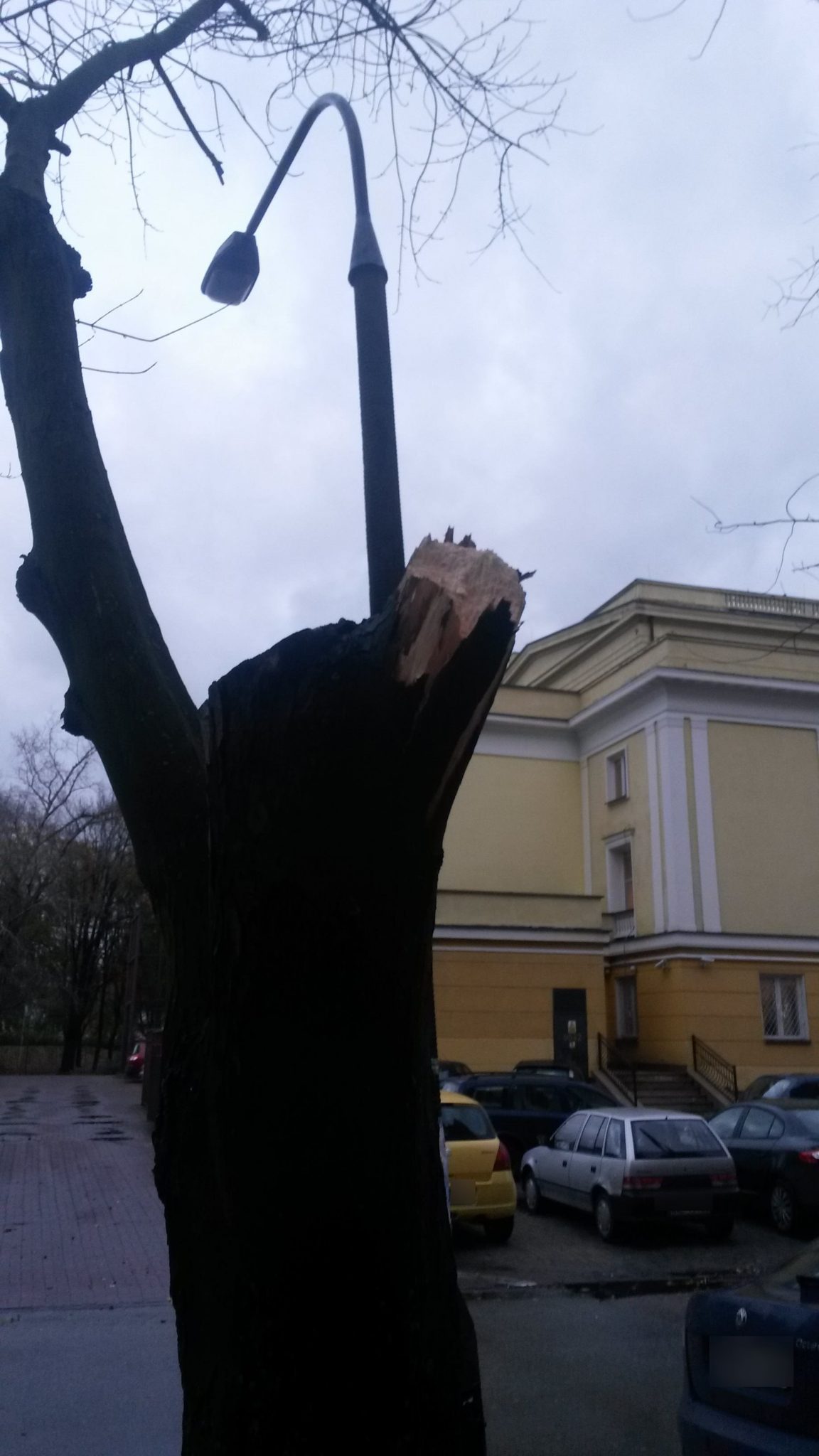 „Przed kilkunastoma minutami o mały włos nie zabił mnie odrywający się konar spadając wprost na maskę samochodu zaparkowanego przy bloku. Brawo Spółdzielnia dbająca o bezpieczeństwo. Gdzie są kontrole BHP się pytam ?” – napisał Nasz Czytelnik Robert.