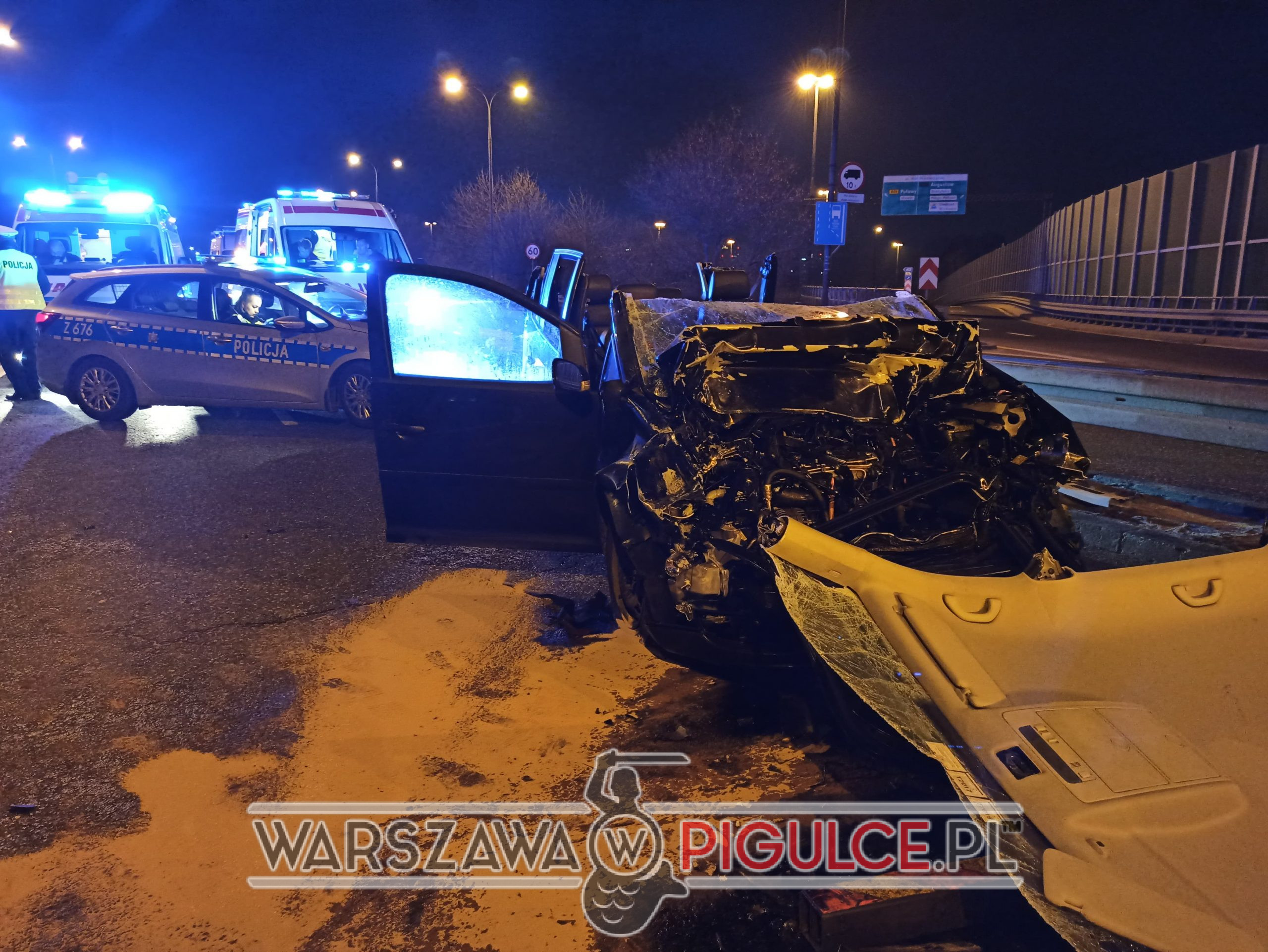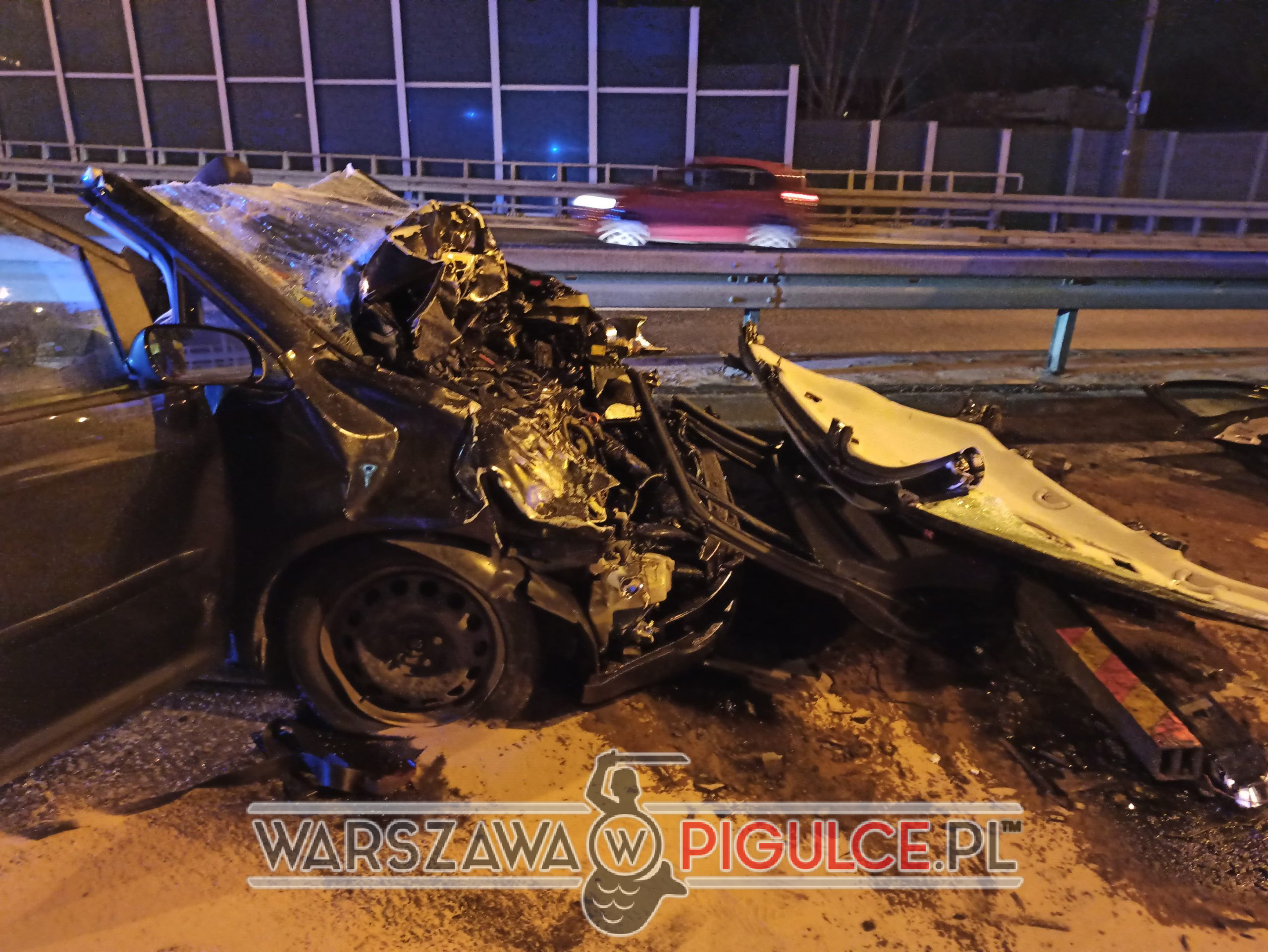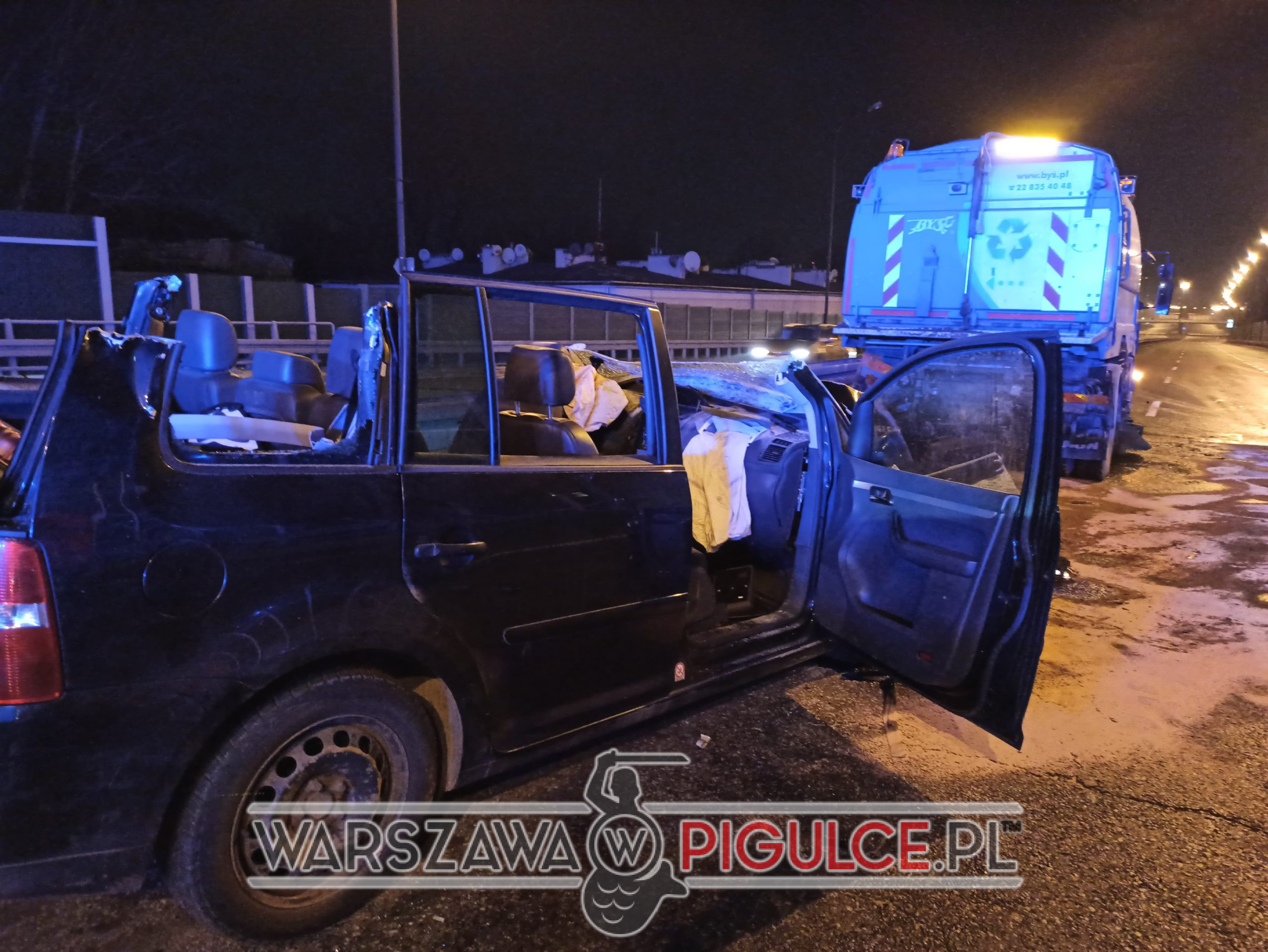 Samochód osobowy marki Volkswagen wjechał w tył pojazdu myjącego jezdnię. Występują utrudnienia na Trasie Łazienkowskiej.