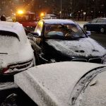 Ze wstępnych ustaleń policji wynika, że volvo uderzyło w bok BMW, które wjechało w zaparkowane samochody marki hyundai i porsche.