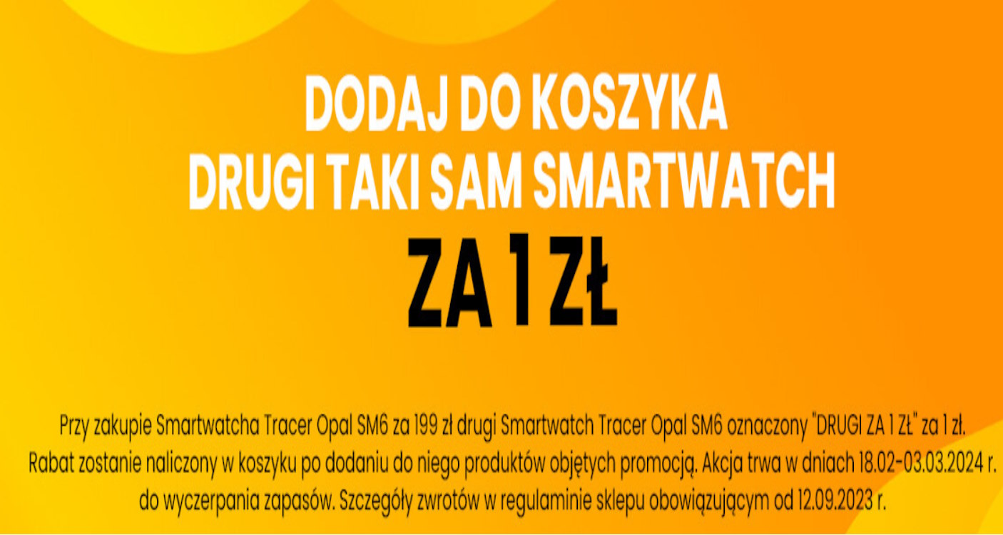 Jeśli szukasz okazji, aby zdobyć nowoczesny smartwatch za symboliczną złotówkę, teraz jest na to idealny moment! Popularny sklep oferuje niesamowitą promocję, w której przy zakupie Smartwatcha Tracer Opal SM6 za 199 zł, drugi egzemplarz tego samego modelu można dodać do koszyka za jedynie 1 zł. Ta promocja jest doskonałym sposobem na zaoszczędzenie pieniędzy, a także idealną okazją do zakupu drugiego zegarka dla bliskiej osoby czy przyjaciela.
