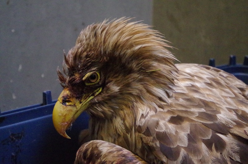 – Ptak już samodzielnie wstaje, jednak nadal jest bardzo słaby. Otrzymuje środki przeciwbólowe i antybiotyki, jest także nawadniany. Bielik ma poważne rany głowy: dziób przebity jest w dwóch miejscach, ponadto lekko uszkodzone zostało jedno oko. Prawdopodobnie w trakcie upadku ucierpiał także nadgarstek oraz jedna noga – mówi lekarz weterynarii dr Agnieszka Czujkowska kierownik Ośrodka Rehabilitacji Ptaków Chronionych „Ptasi Azyl” przy Miejskim Ogrodzie Zoologicznym.